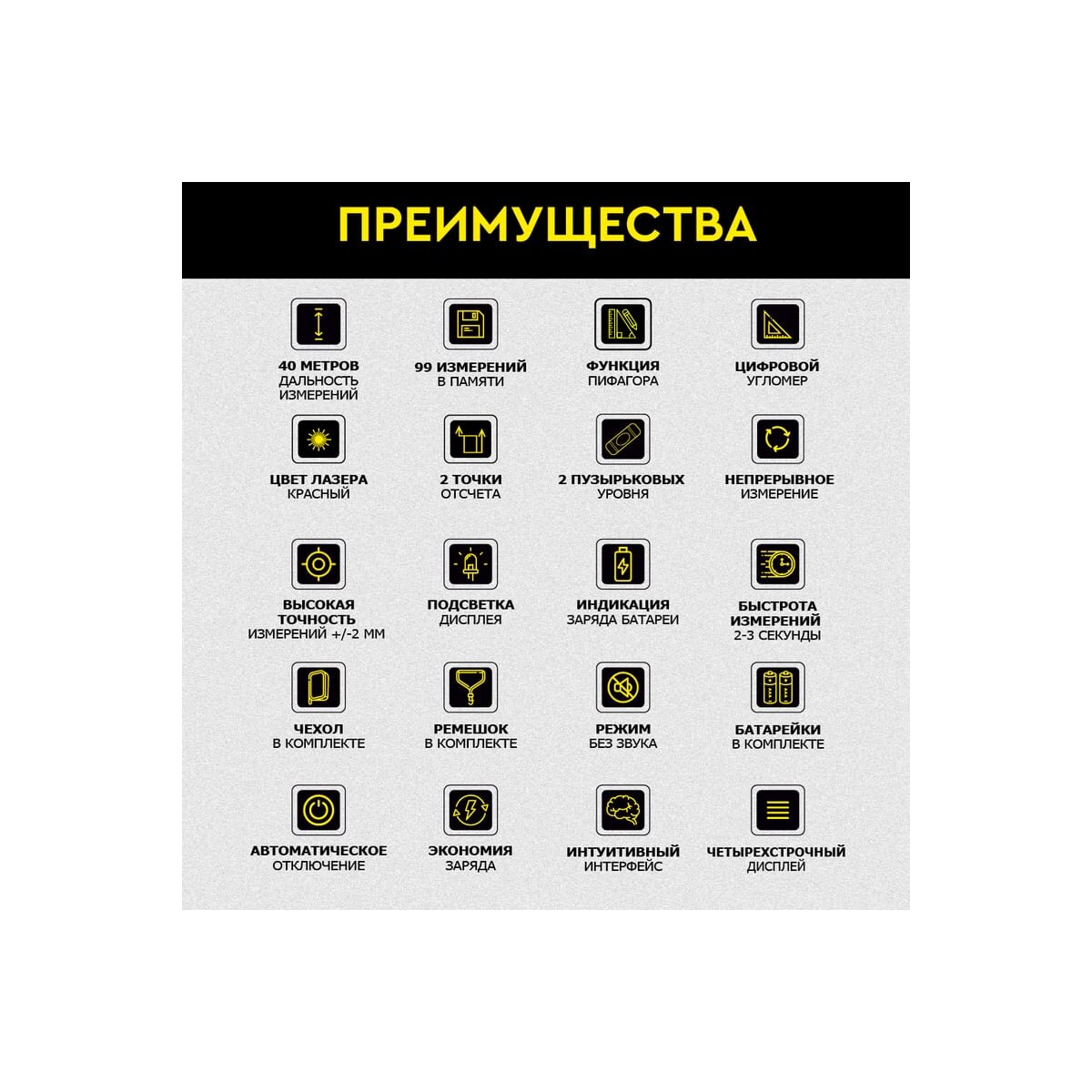 - 40 метров дальность измерений