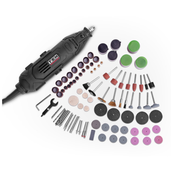 кейс - 1 шт., полировальные круги, шлифовальные камни, абразивные диски, гравер - 1 шт., шлифовальные втулки и диски, щетка и щетинные щетки из нержавеющей стали, высокоскоростной резак, гравированные фрезы и сверла