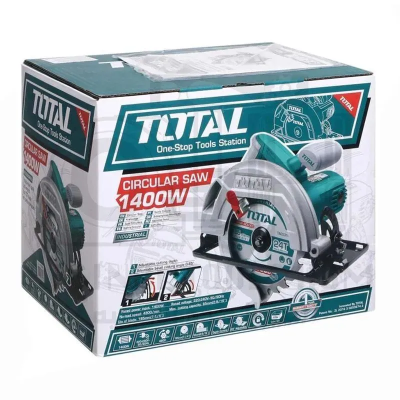 Циркулярная пила TOTAL TS11418526, мощностью 1400 Вт – не заменимый инструмент для всего спектра столярных работ.