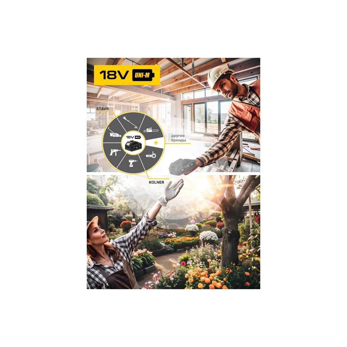 Модель работает от 18-вольтового аккумулятора, который обеспечивает продолжительную работу без необходимости частой подзарядки.