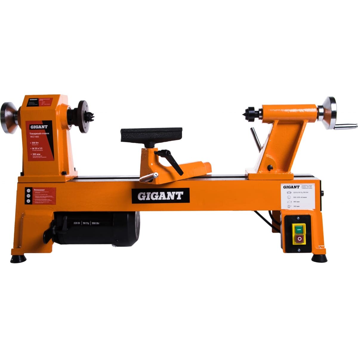 Токарный станок Gigant WLT-460 предназначен для ручной обработки деревянных заготовок. Наличие упора и компактные размеры позволяют быстро настроить рабочее место. Станок при необходимости можно перемещать.