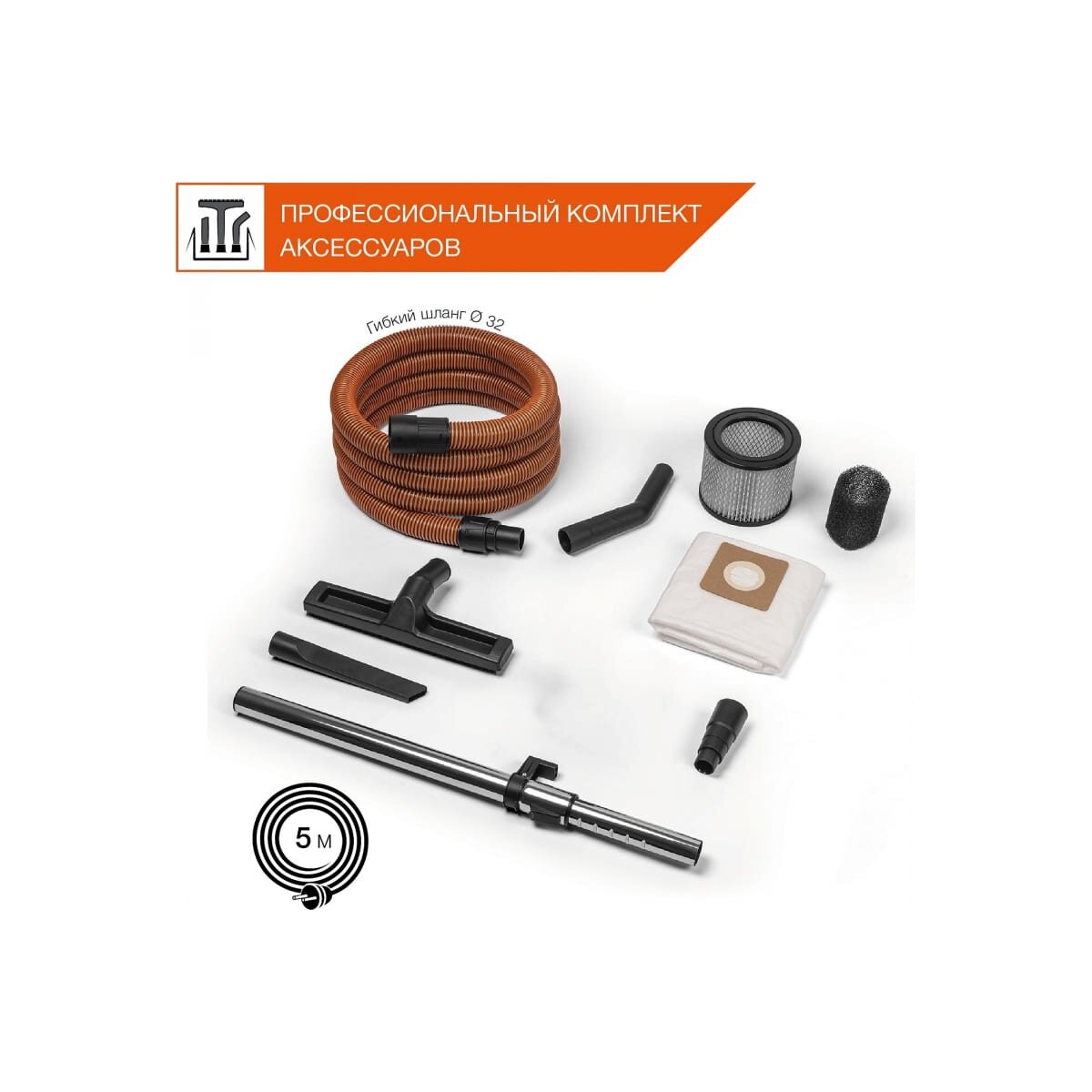 9.Шланг увеличенной длины 4 м. Шланг длиной 4 м позволяет собирать строительный мусор на высоте, без необходимости поднимать пылесос