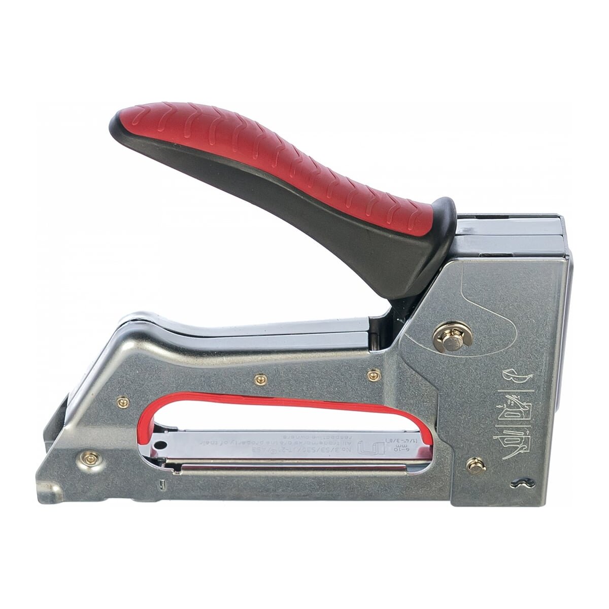 Степлер скобозабивной, тип скобы №53, металлический корпус, 155х29х139мм. Неразборный корпус из прочных стальных деталей, с рессорным механизмом. Отличается компактными размерами и отсутствием съемных частей. Металлическая рукоятка с двухкомпонентным резино-пластиковым покрытием. Оснащен удобными механизмами для быстрой замены скоб и для легкого нажима рукоятки при забивании скобы. Ручка степлера имеет предохранитель для удобства и безопасности пользователя. В корпусе имеется окошко-индикатор для контроля остатка скоб. Материал: сталь, ABS пластик Назначение: Строительный степлер — инструмент для крепления скобами различных материалов к деревянному основанию путём их прибивания. В отличие от офисного степлера, скоба строительного степлера не пробивает материал насквозь и ее концы не загибаются.