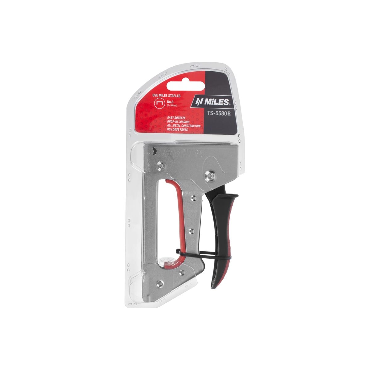 - Неразборный стальной корпус - для долгого срока службы скобозабивного степлера Miles TS-5580;