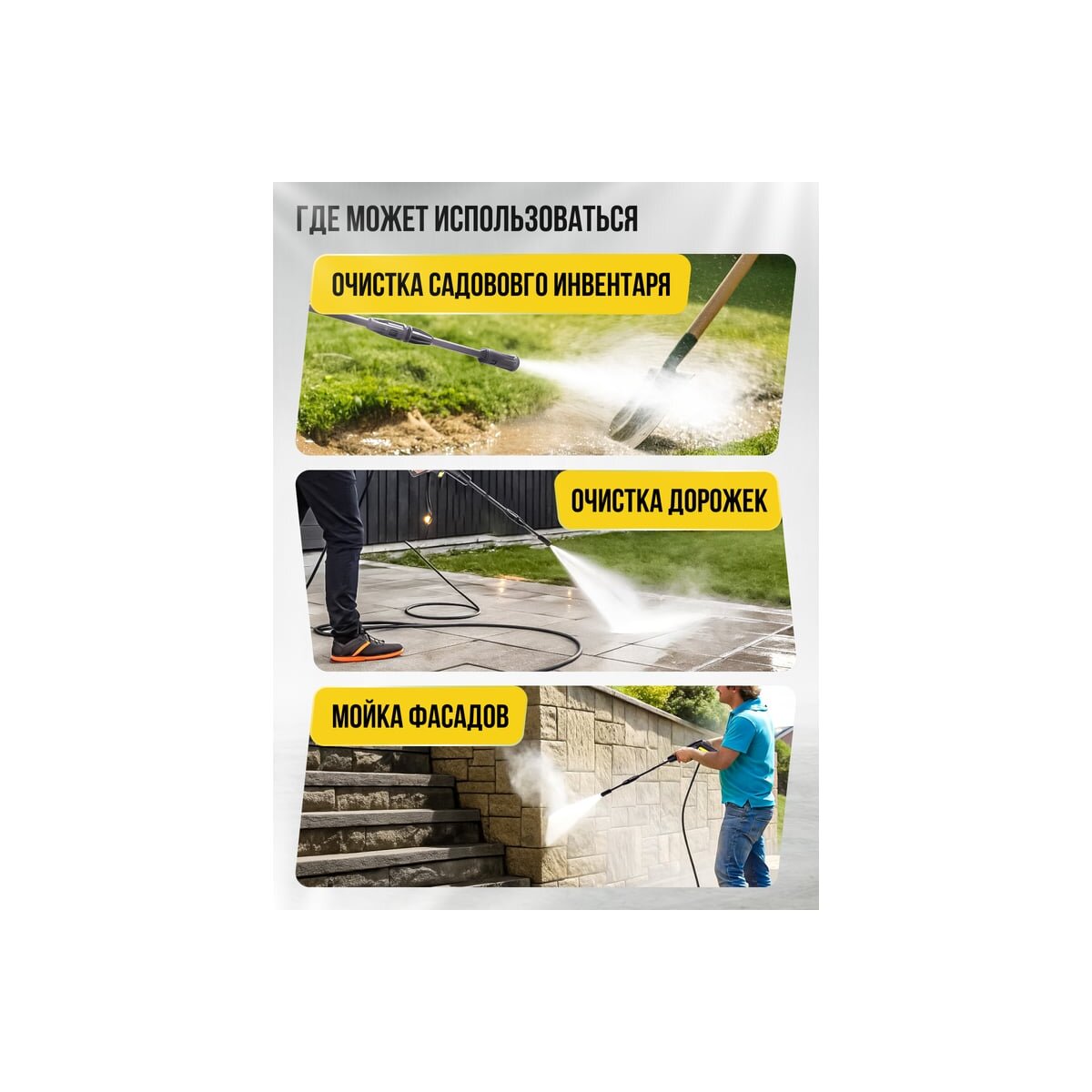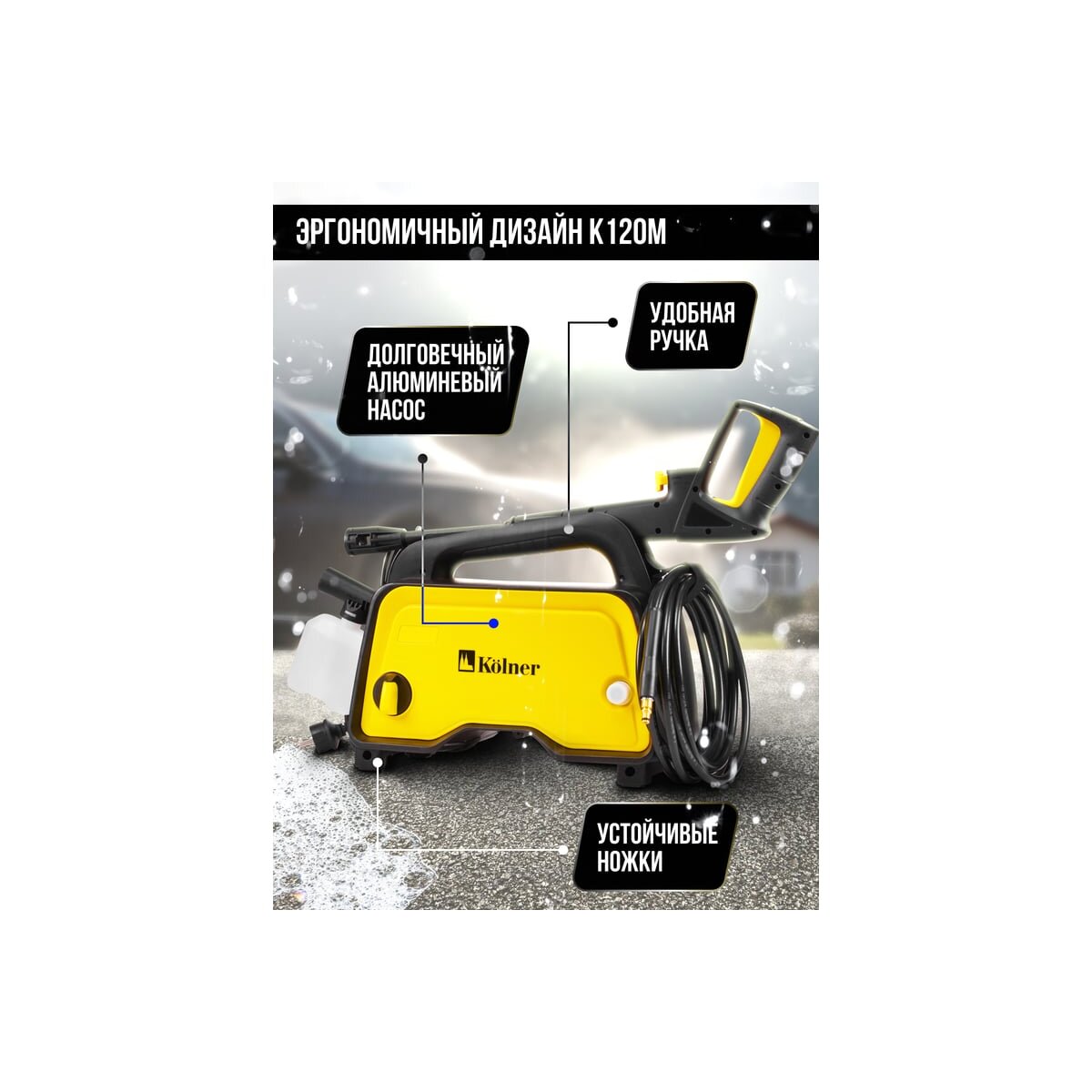 Мойка Kolner K120M подходит для очистки различных поверхностей: фасадов зданий, автомобилей, дорожек, заборов, садовой мебели и многого другого.