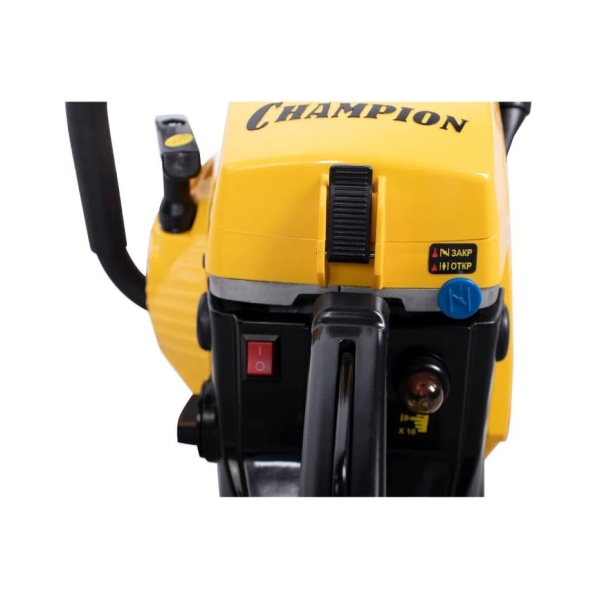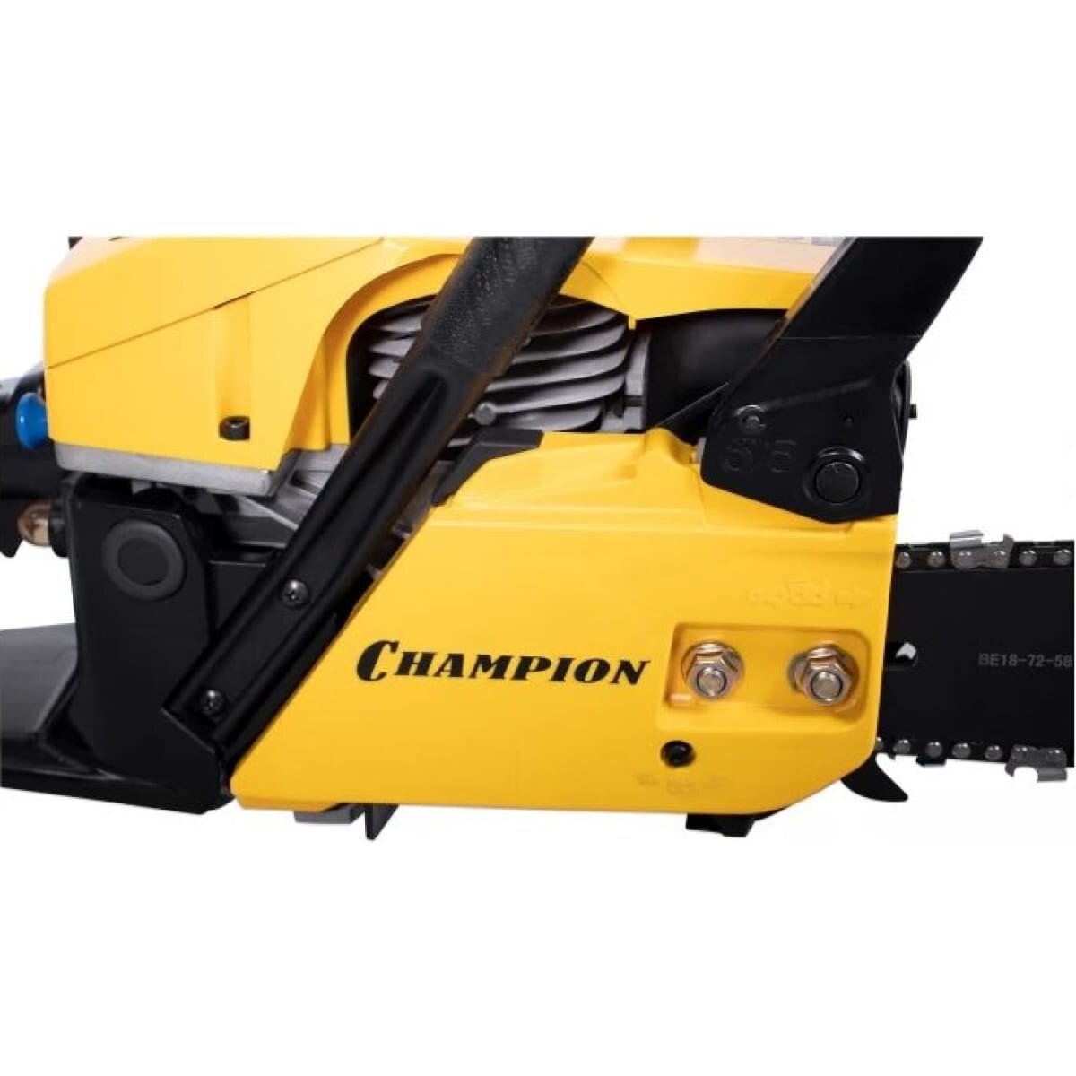 У цепи пилы профессиональный шаг 0,325 дюйма под широкий паз 1,5 мм. Бензопила Champion 251-18 оборудована подогревом карбюратора, позволяющим эксплуатацию при отрицательных температурах. В основании пильной шины есть стальной зубчатый упор, упрощающий распиловку бревен больших диаметров. Подача смазывающего масла на шину и цепь производиться автоматически посредством металлического насоса. Двигатель бензопилы работает на смеси двухтактного масла с бензином в пропорции 1 к 50.