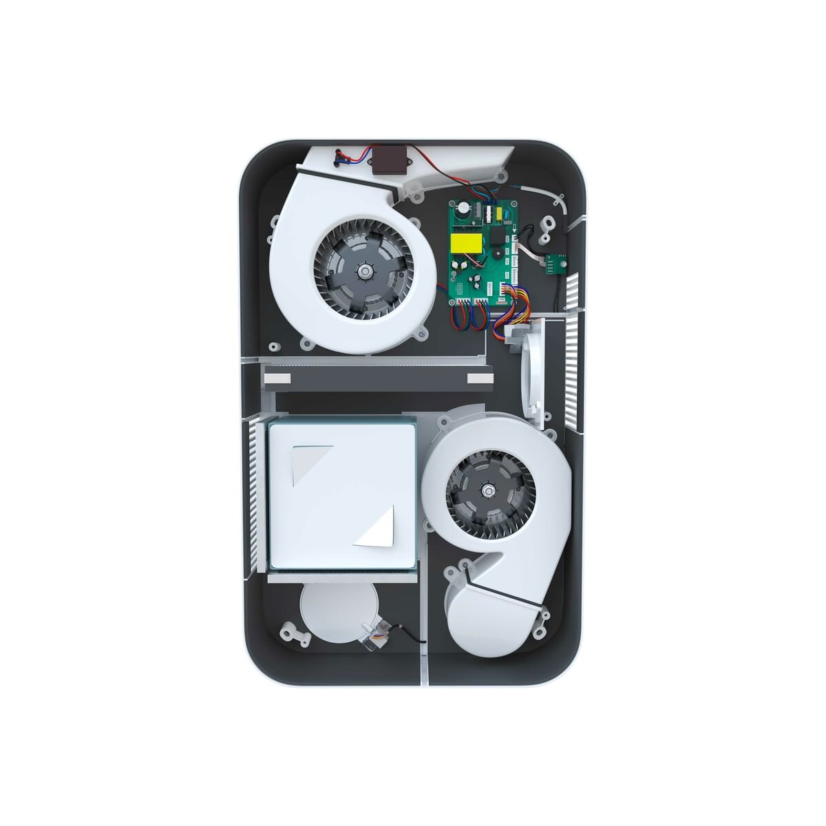 Гигроскопическая структура рекуператора позволяет влаге, сконденсировавшейся в вытяжных каналах, переходить в приточные каналы, увлажняя воздух в зимний период.