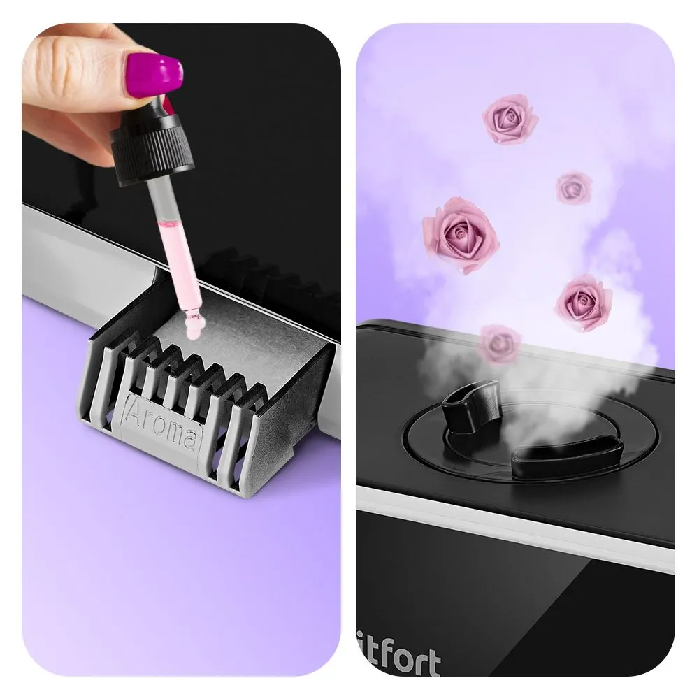В данной модели увлажнителя предусмотрена ванночка для ароматизации с губкой, на которую добавляют эфирные или аромамасла. Во время работы увлажнителя ароматическое вещество будет испаряться, и вместе с туманом выдуваться наружу.