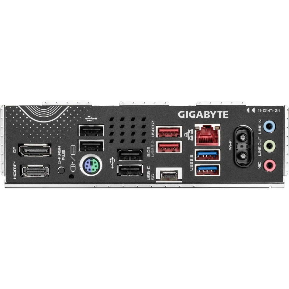 PS/2, 4 x USB 2.0, 2 x USB 3.2 Gen1, USB 3.2 Gen1 Type-C, 2 x USB 3.2 Gen2, HDMI, DisplayPort, RJ-45