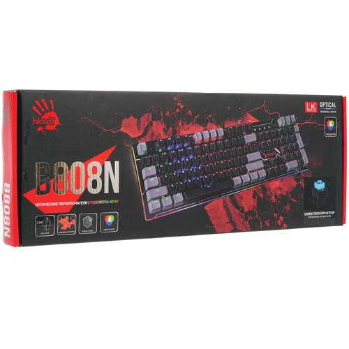 Клавиатура проводная A4Tech Bloody B808N [B865] обладает полноразмерной раскладкой с 104 клавишами и выделяется системой многоцветной подсветки. Данная клавиатура создана специально для геймеров и способна сделать игровой процесс максимально увлекательным. Оптомеханические переключатели с поддержкой технологии LK Light Strike и откликом 0.2 мс обеспечивают точную реакцию в играх. Клавиатура выполнена в прочном пластиковом корпусе с водозащищенной конструкцией. Для подключения A4Tech Bloody B808N [B865] применяется кабель с интерфейсом USB и длиной 1.8 м.