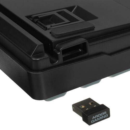 ARDOR GAMING Guardian с классическим дизайном оснащена отдельным цифровым блоком и рядом клавиш функций Fn. Аккумуляторная модель может работать по Bluetooth, радиоканалу или USB-подключению. При полном заряде вы можете отсоединять кабель и располагаться на любом расстоянии от монитора/телевизора. Клавиатура идет в комплекте с двойным пуллером, сменными свитчами и фирменной наклейкой.