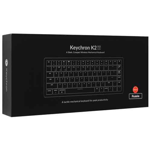 Клавиатура проводная + беспроводная Keychron K2 v2 [K2-C1H] оборудована линейными переключателями Gateron Red, которые отличаются мягким и плавным нажатием. Конфигурация не предусматривает цифровой блок, что уменьшает размеры аксессуара и делает возможным компактное размещение на рабочем столе. При изготовлении кейкапов использовалась технология Double-shot, не допускающая истирания символов.