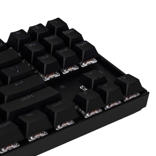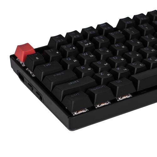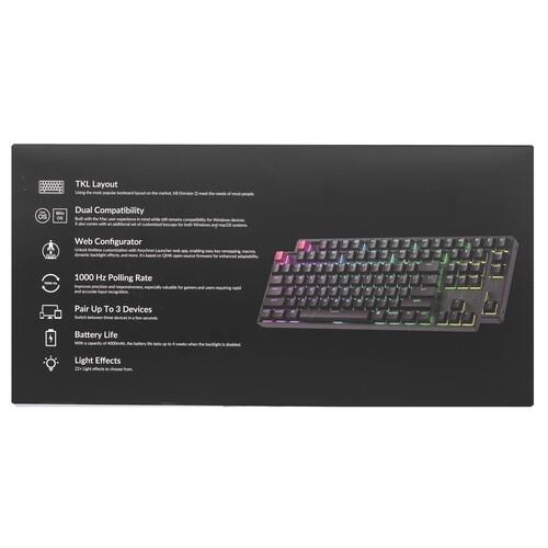 Беспроводная механическая клавиатура в раскладке TKL (80%). Double-shot PBT кейкапы с пропуском подсветки, полностью программируемая, поддерживает Bluetooth и подключение по проводу. В комплекте командные клавиши для Windows и macOS.