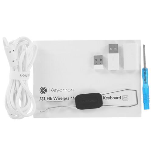 USB-ресивер, адаптер Type-A, документация, кабель USB Type-A - USB Type-C,комплект сменных клавиш для MacOS / Windows, отвертка, пуллер для кейкапов, пуллер для переключателей, шестигранный ключещё