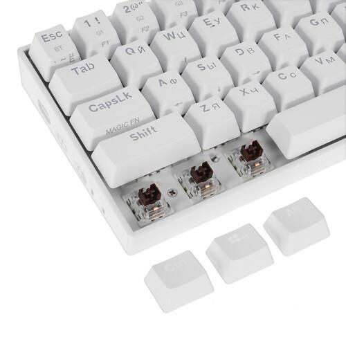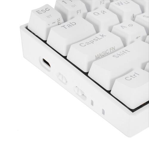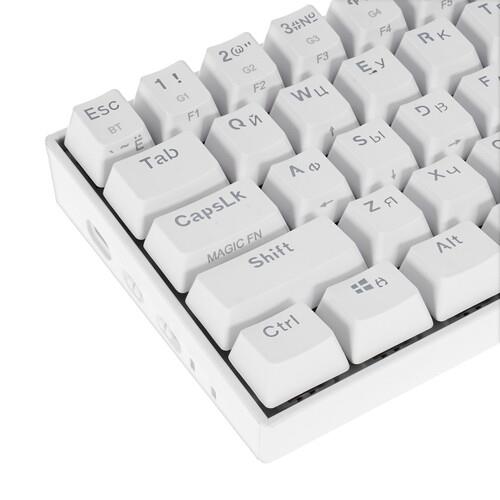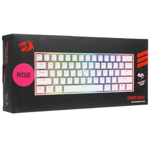 Клавиатура Redragon Draconic [77810] одновременно с компактными размерами и привлекательным исполнением предлагает геймерам высокий комфорт управления в играх. Она оборудована 61 клавишей с тактильными механическими переключателями Outemu Tea, которым обладают четким откликом и повышенной износостойкостью. В клавишах установлены светодиоды RGB, формирующие оригинальные световые эффекты для полного погружения в захватывающий игровой процесс. Клавиатура Redragon Draconic [77810] работает в беспроводном режиме с подключением по Bluetooth и питанием от аккумулятора или синхронизируется с компьютером при помощи USB-кабеля длиной 1.8 м.
