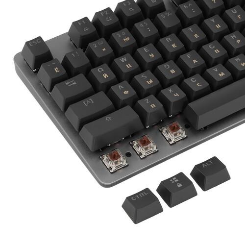 Клавиатура проводная Logitech K845 [920-009218] заключена в металлический корпус, который отличается устойчивостью к преждевременному образованию повреждений. Основой модели выступают тактильные переключатели Brown. Они удобны при наборе текстов и прохождении игровых сессий. Конфигурацией предусмотрено 104 кнопки с подсветкой, предупреждающей погрешности ввода.