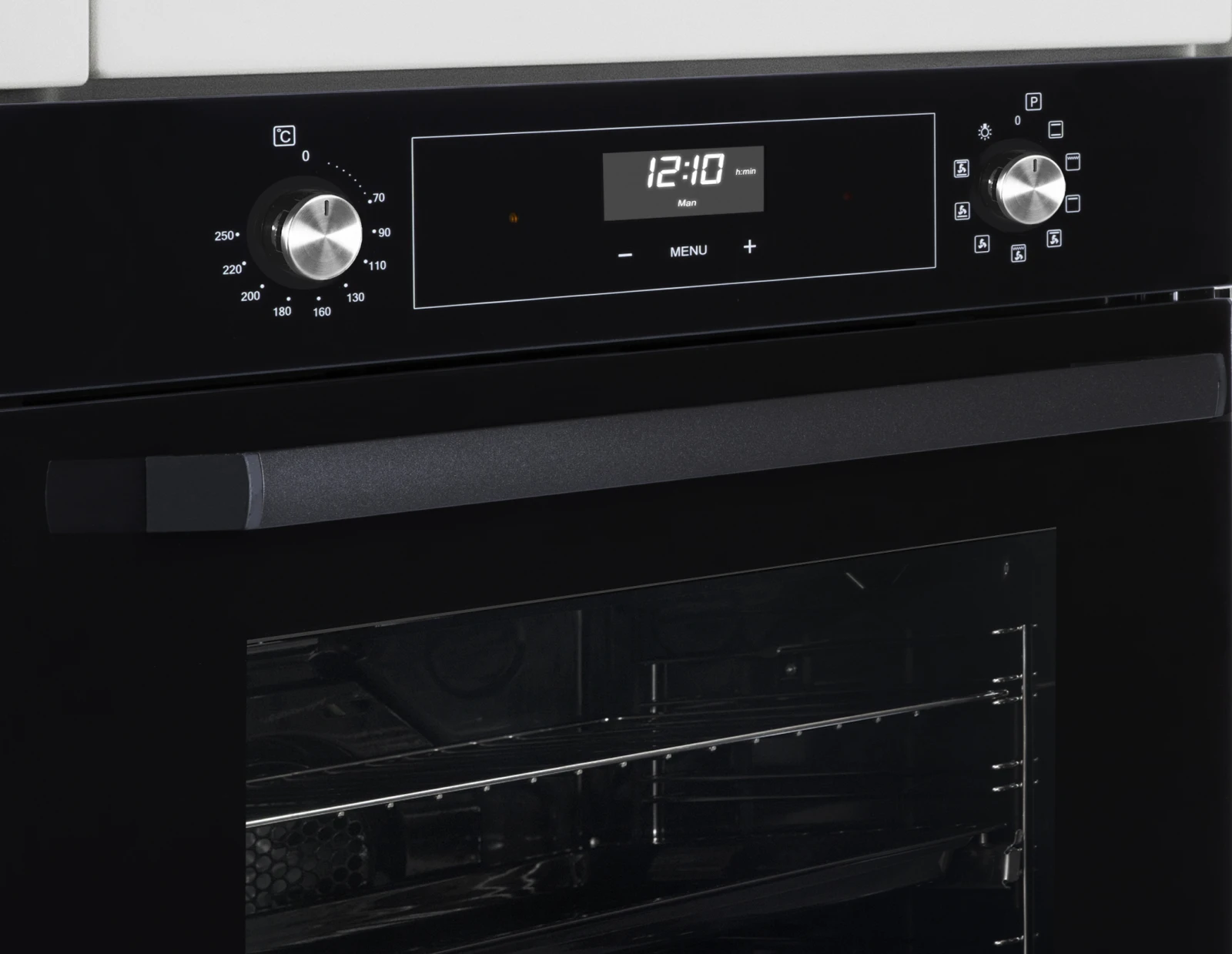 • Таймер с автоотключением: Забудьте о пригоревшей еде. Установите время, и духовка выключится автоматически.