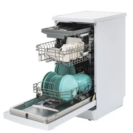 Экономичный расход воды (14 литров за цикл) и высокий класс энергоэффективности A+ делают эксплуатацию выгодной. Система защиты от протечек гарантирует безопасность использования. Несмотря на компактные размеры, машина обеспечивает качественное мытье и сушку посуды, избавляя от необходимости ручной мойки.