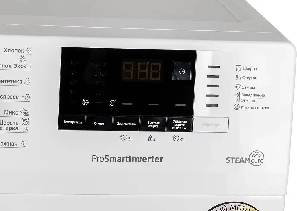 • Особенности: дисплей, отложенный старт, блокировка от детей, индикация времени до конца стирки, система контроля пенообразования