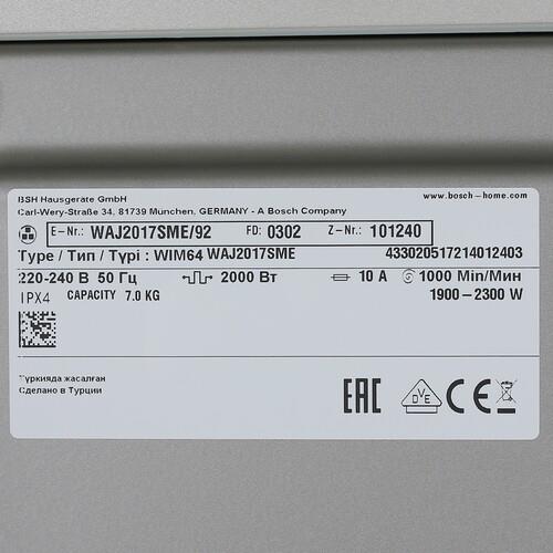 Стиральная машина Bosch WAJ2017SME с фронтальной загрузкой до 7 кг способна заботиться о чистоте вещей. Модель оснащена 14 программами для разных типов тканей и степени загрязненности. Технология VarioDrum позволяет устранять стойкие загрязнения и бережно воздействует на структуру тканей. Система 3D AquaSpar равномерно распределяет воду в барабане.
