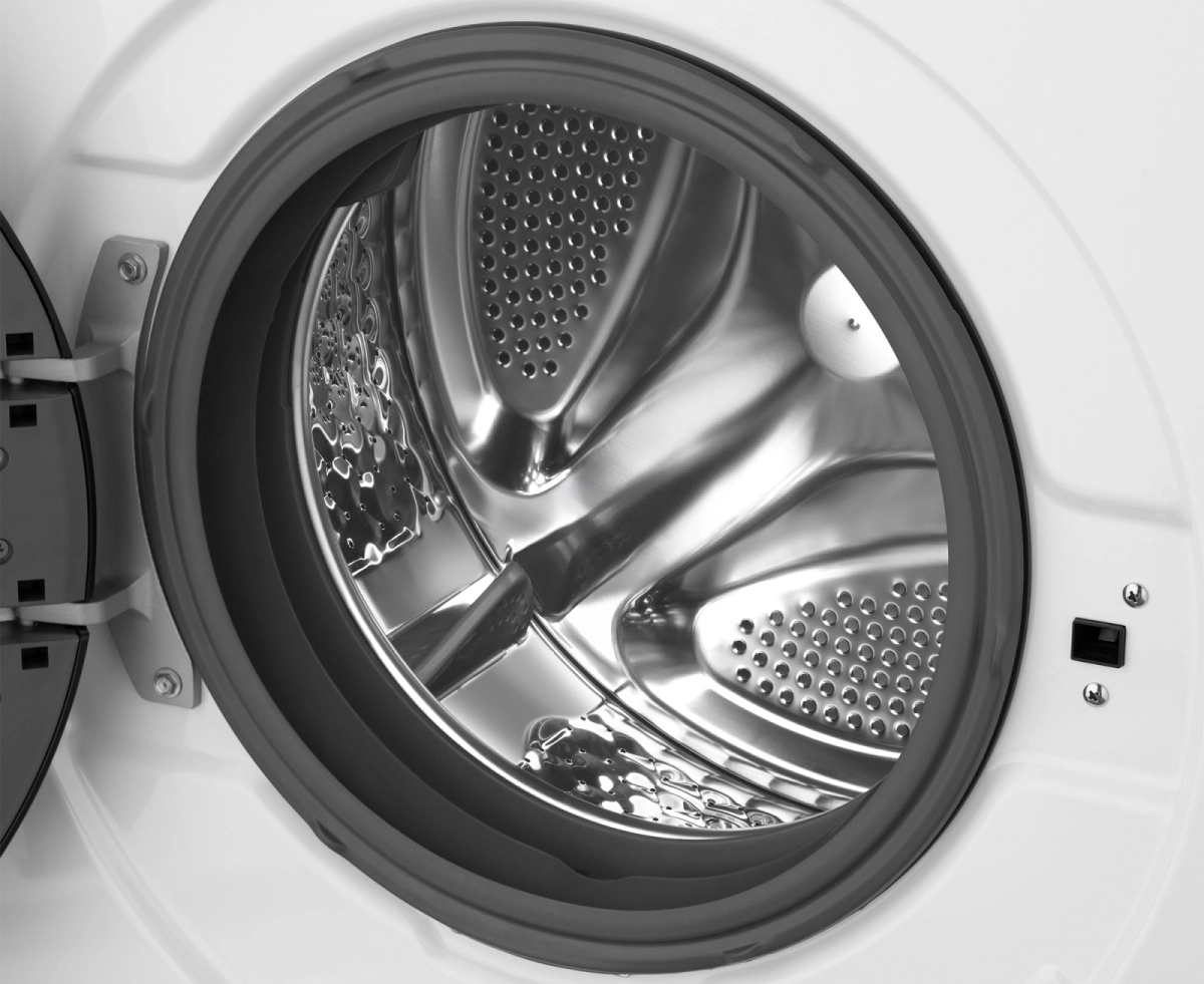 Инверторный двигатель с прямым приводом обеспечивает плавную и практически бесшумную работу (всего 56 дБ во время стирки), а также повышенную долговечность и стабильность работы механизма.