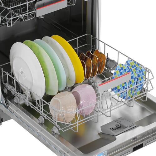 Встраиваемая посудомоечная машина Bosch SMV4EVX10E оснащена инверторным мотором, который уменьшает уровень издаваемого шума и отличается длительным сроком службы. Внутренний бак из нержавеющей стали не покрывается ржавчиной и коррозийным налетом. Кнопочная панель открывает доступ к 6 программам. Возможно управление с экрана смартфона через приложение Home Connect.