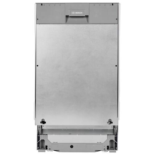 Встраиваемая посудомоечная машина Bosch SPV6EMX70Q серебристого цвета вмещает в себя до 10 комплектов посуды и подойдет для семьи из 3-4 человек. Она потребляет всего 9.5 литров воды за цикл и позволяет экономить расход по сравнению с ручной мойкой. Модель использует конденсационную сушку посуды, когда вода испаряется самостоятельно и собирается в специальный поддон.