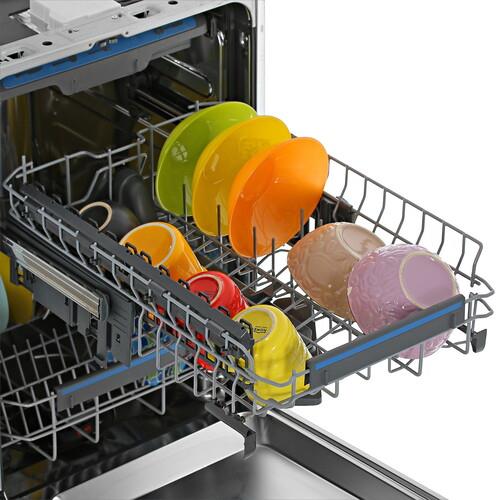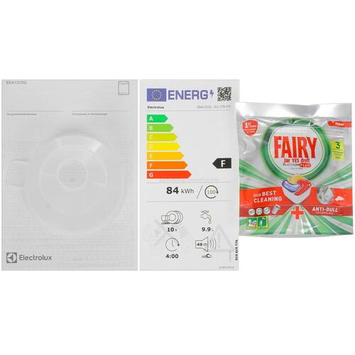 Встраиваемая посудомоечная машина Electrolux EEA13100L поддерживает систему автоматического открывания дверцы. Она обеспечивает быстрое удаление избыточной влаги. Расположенный над верхней корзиной разбрызгиватель равномерно распределяет жидкость для повышения эффективности очистки. Индикаторы информируют о необходимости пополнить резервуары с солью и ополаскивателем.