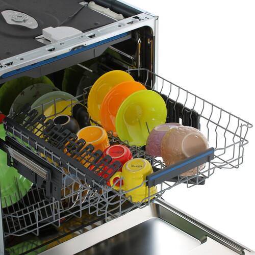 Встраиваемая посудомоечная машина Electrolux EES48200L с 3 корзинами и отдельными полочками для чашек вмещает 14 комплектов. Складные держатели расширяют пространство для мытья больших кастрюль и сковородок. Разбрызгиватель FlexiSpray уделяет особое внимание посуде в нижней корзине, эффективно омывает ее со всех сторон для тщательной очистки и полоскания.