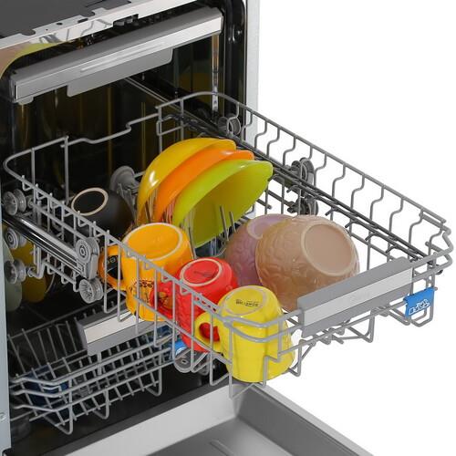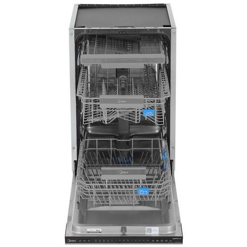 Встраиваемая посудомоечная машина Midea MID45S150i поддерживает ночную программу, которая уменьшает уровень издаваемого шума. Опция самоочистки удаляет накопившиеся в баке загрязнения. Выбор параметров осуществляется через кнопочную панель, приложение MSmartHome, голосового ассистента Алиса. Смягчением воды занимается ионообменник.