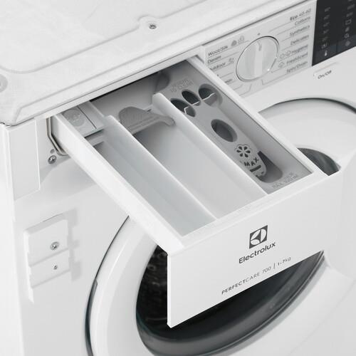 Встраиваемая стиральная машина Electrolux EWN7F447WI обладает фронтальной загрузкой и способна вместить до 7 кг белья за один цикл стирки. Управление машиной осуществляется электронно, на панели есть удобный LED-дисплей. Белый цвет корпуса подойдет к любому интерьеру. Внутренний бак изготовлен из нержавеющей стали, что обеспечивает его долговечность и устойчивость к коррозии. В стиральной машине предусмотрено 14 программ стирки, включая специальные режимы для хлопка, синтетики, шерсти, шелка, джинсов, пуховых изделий и спортивной одежды. Также есть быстрая программа стирки на 14 минут, программы полоскания, отжима, слива и паровой обработки белья. Особенностью модели является наличие инверторного двигателя, который обеспечивает тихую и эффективную работу.