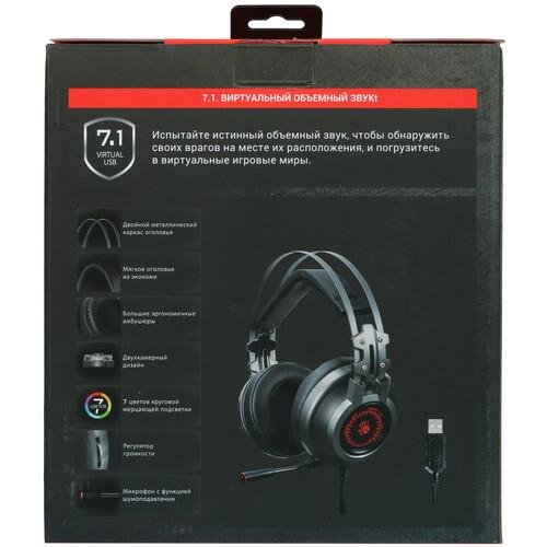 Проводная гарнитура A4Tech Bloody J527 с передовыми технологиями изготовления и богатыми функциональными возможностями позволит с головой погрузиться в увлекательный мир видеоигр благодаря поддержке виртуального объемного звука 7.1. Теперь вы сможете оказаться в самом центре событий, не только слыша каждый шорох, издаваемый врагами в игре, но и безошибочно определяя направление, откуда он доносится. Об игровой направленности наушников также свидетельствует дизайн: черно-серый цвет дополняет разноцветная подсветка, которая еще более эффектно смотрится в темноте.
