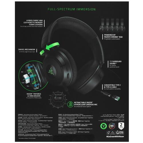 Погрузитесь в яркий спектр звука с Razer Kraken V4 X — проводной игровой гарнитурой на базе Razer Chroma RGB. Теперь обновленная с трансформируемым кабелем Type C и Type A, поднимите свою игру на другие высоты погружения на всех ваших любимых платформах.