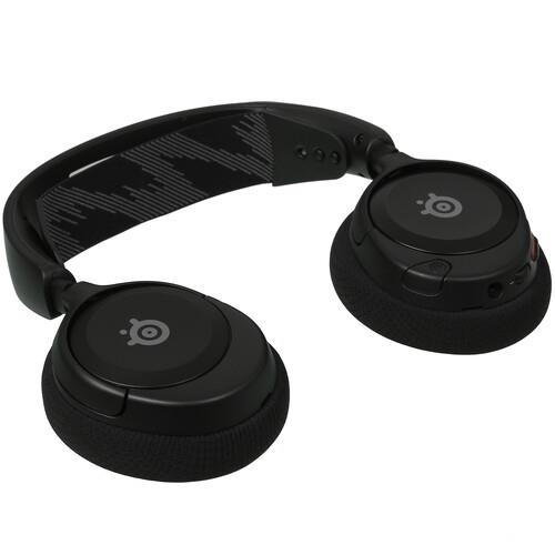 Проводная гарнитура SteelSeries Arctis Nova 1 подключается к устройствам при помощи 1.2-м кабеля с прямым штекером jack 3.5 мм. Сдвоенное регулируемое оголовье позволяет подогнать гарнитуру под размер и особенности головы. Мягкие охватывающие амбушюры с тканевым покрытием обеспечивают плотное прилегание наушников к ушам, что делает их длительное ношение комфортным. На чашах гарнитуры есть удобные кнопки регулировки громкости и включения/отключения микрофона.