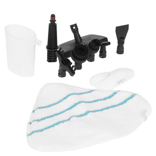 документация, комплект насадок, мерный стакан, рамка для ковра, тряпка для отпаривания,тряпка для пола х 2 штещё