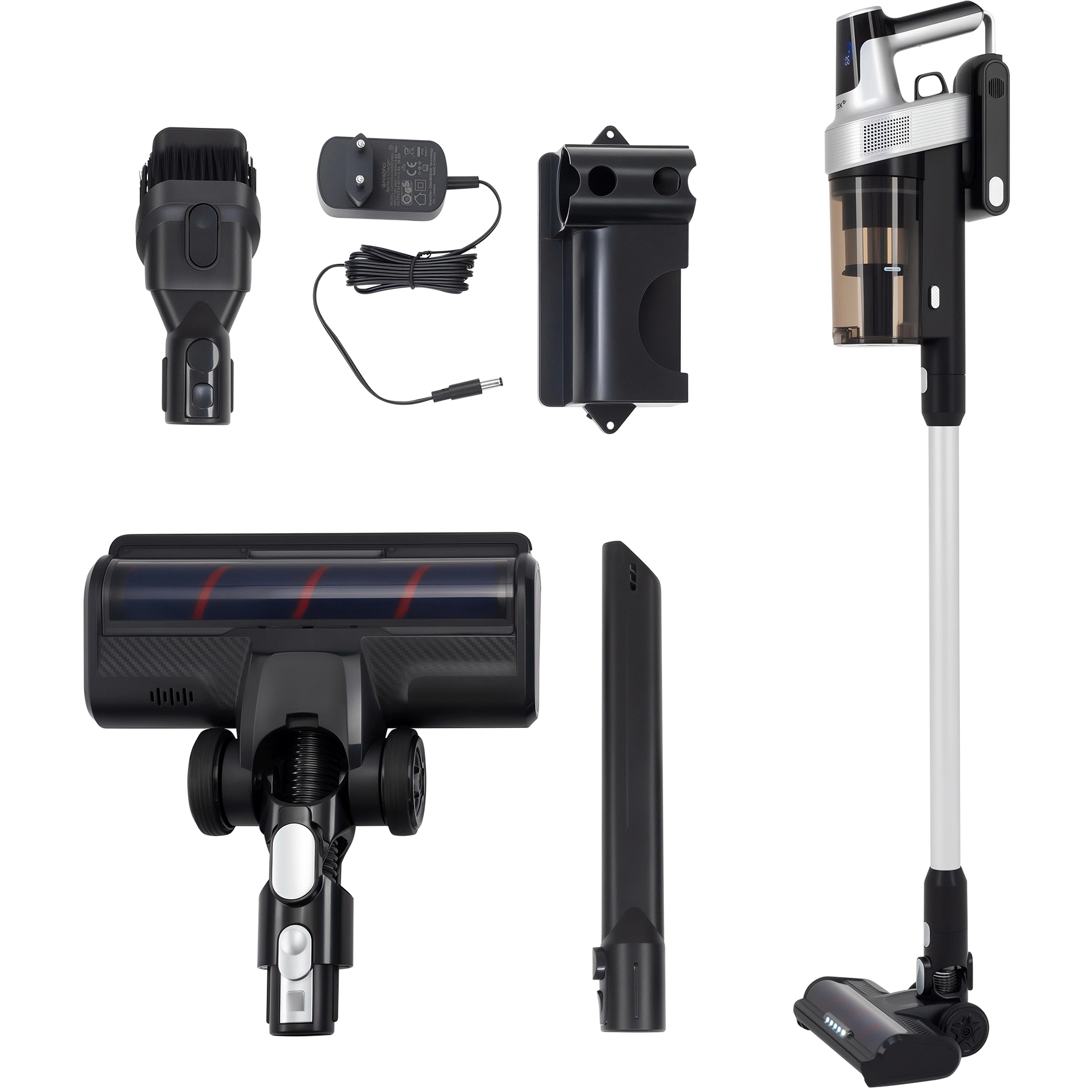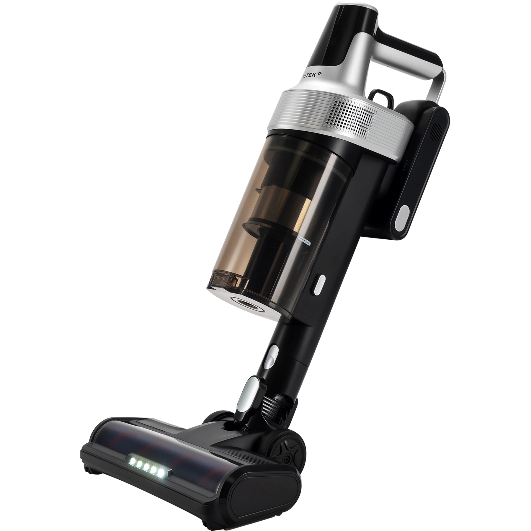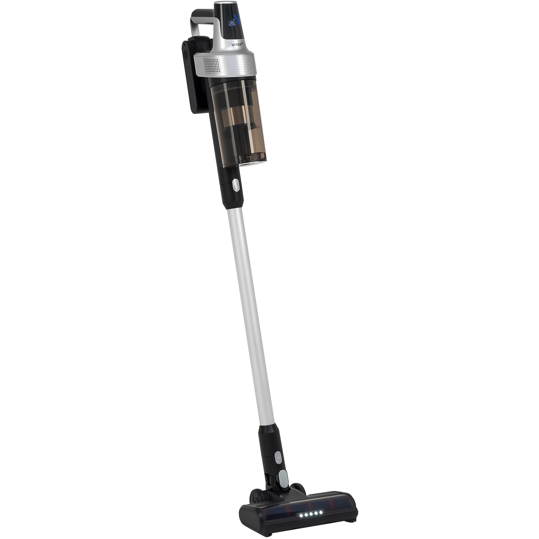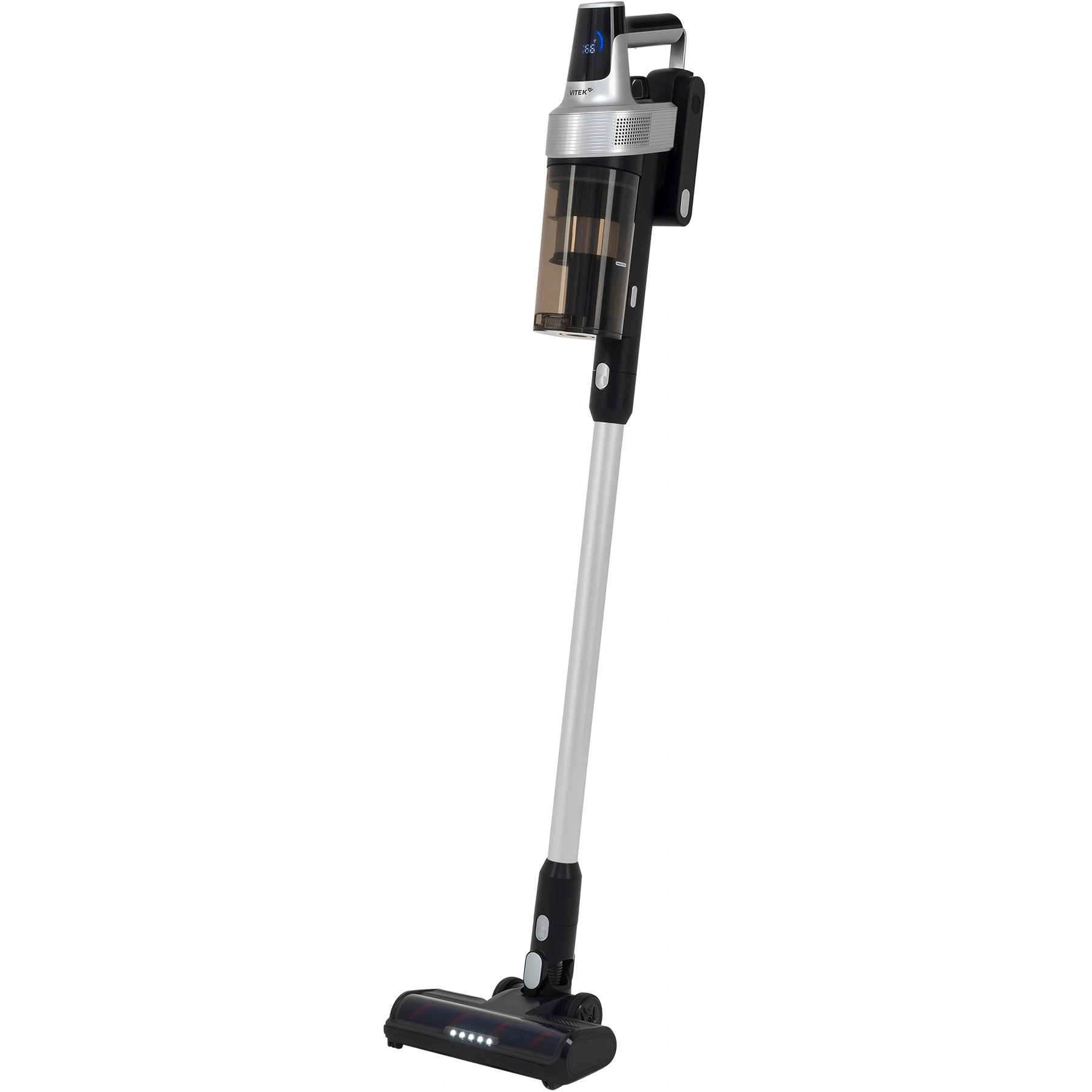 LED-дисплей, легко очищаемый пылесборник, подсветка зоны уборки, прорезиненные колеса