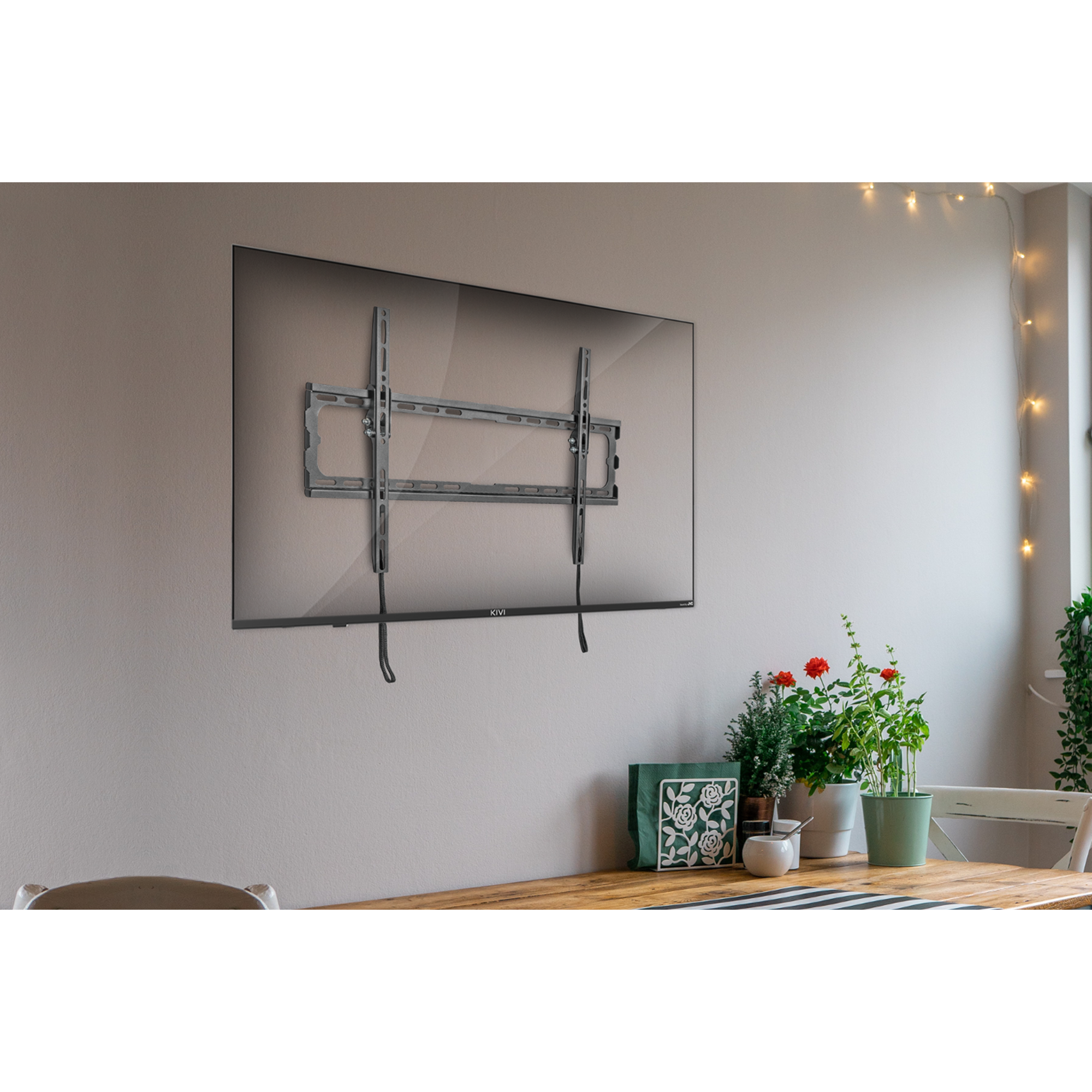 Всего 20 миллиметров до стены делают кронштейн KIVI Basic-44Т почти незаметным за ТВ-панелью. Таким образом, ваш интерьер останется лаконичным и изящным, несмотря на тщательно и надежно закрепленный телевизор. Между тем, просматривать фильмы и программы будет значительно приятнее и комфортнее также благодаря опции наклона на 8°.