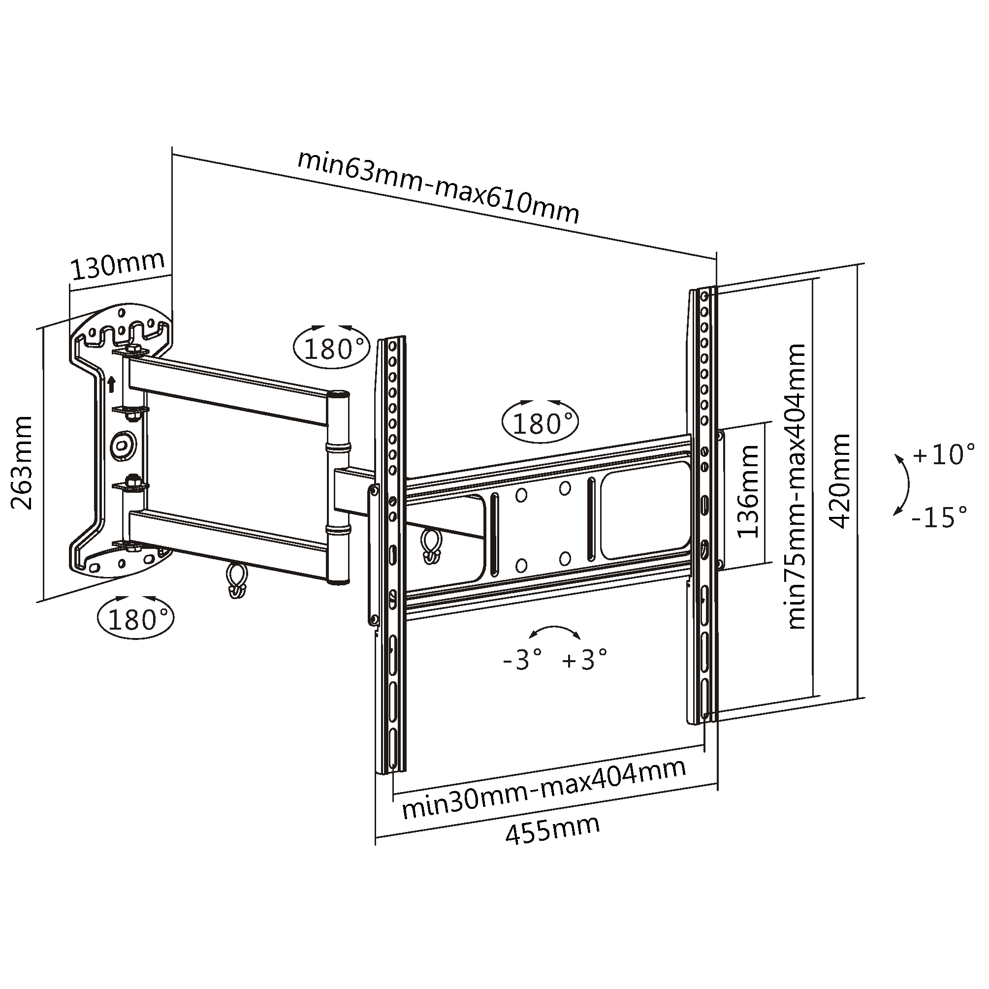 Расстояние от стены: 63~610 мм