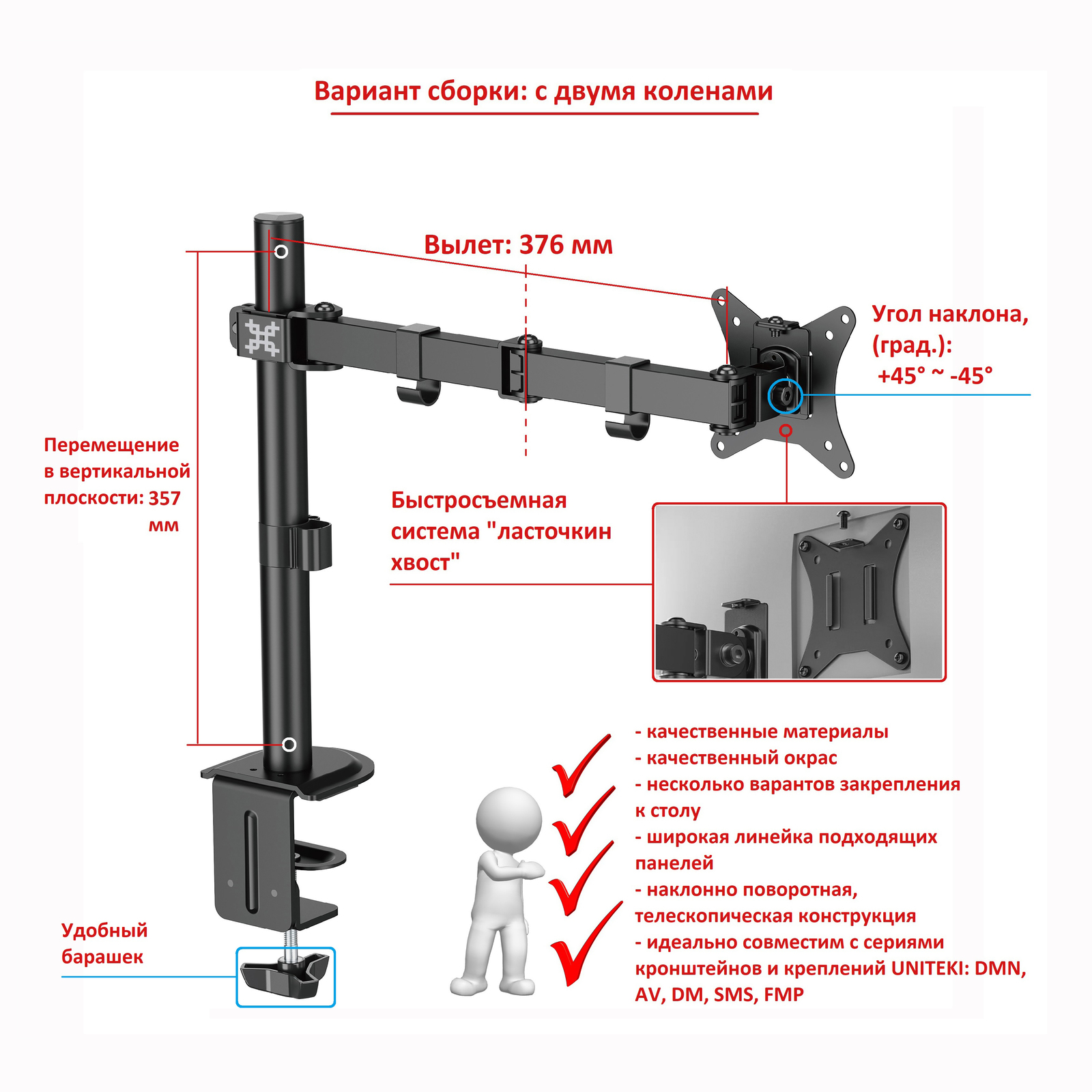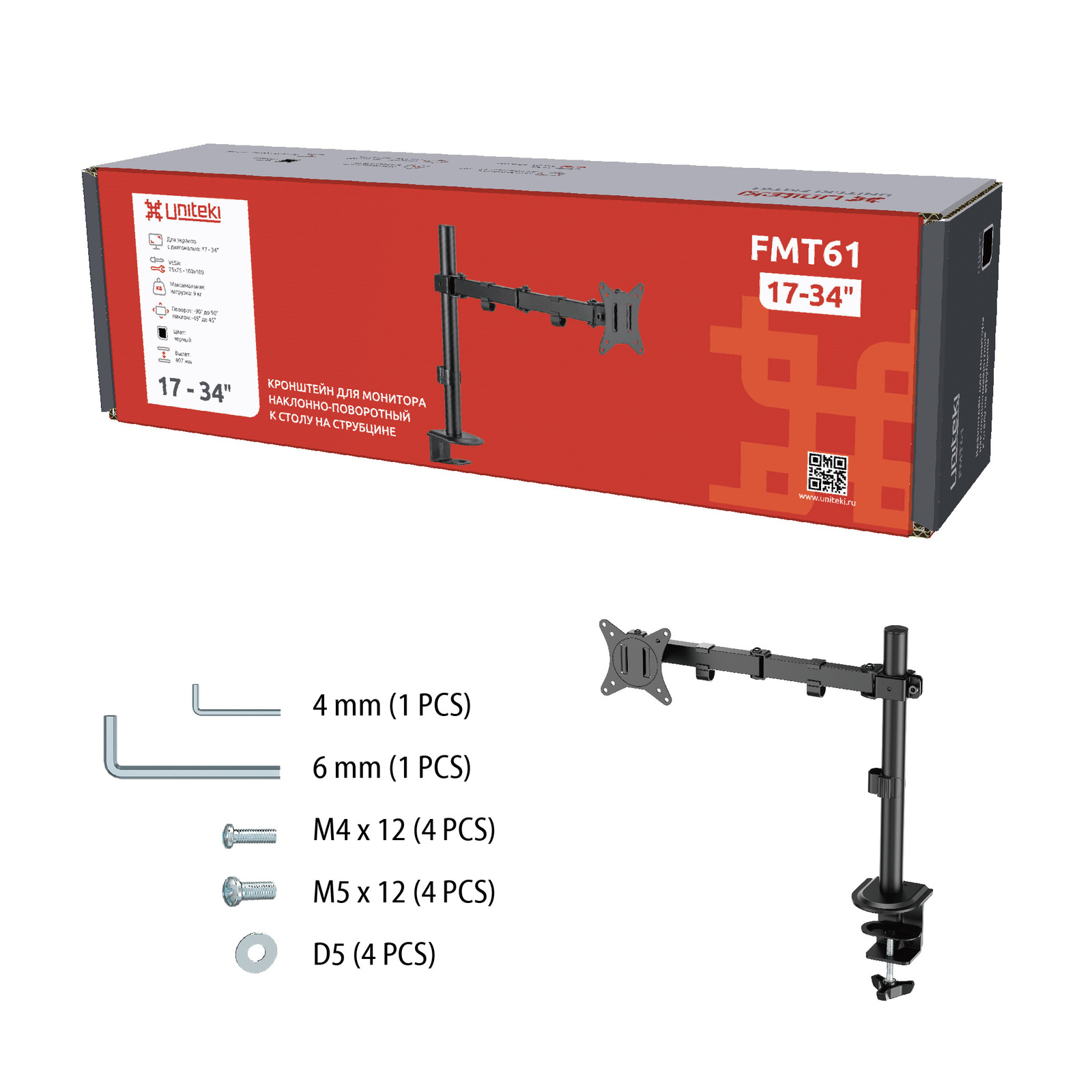Наклонно-поворотный кронштейн-крепление со струбциной UNITEKI FMT61 отвечает высочайшим стандартам качества.