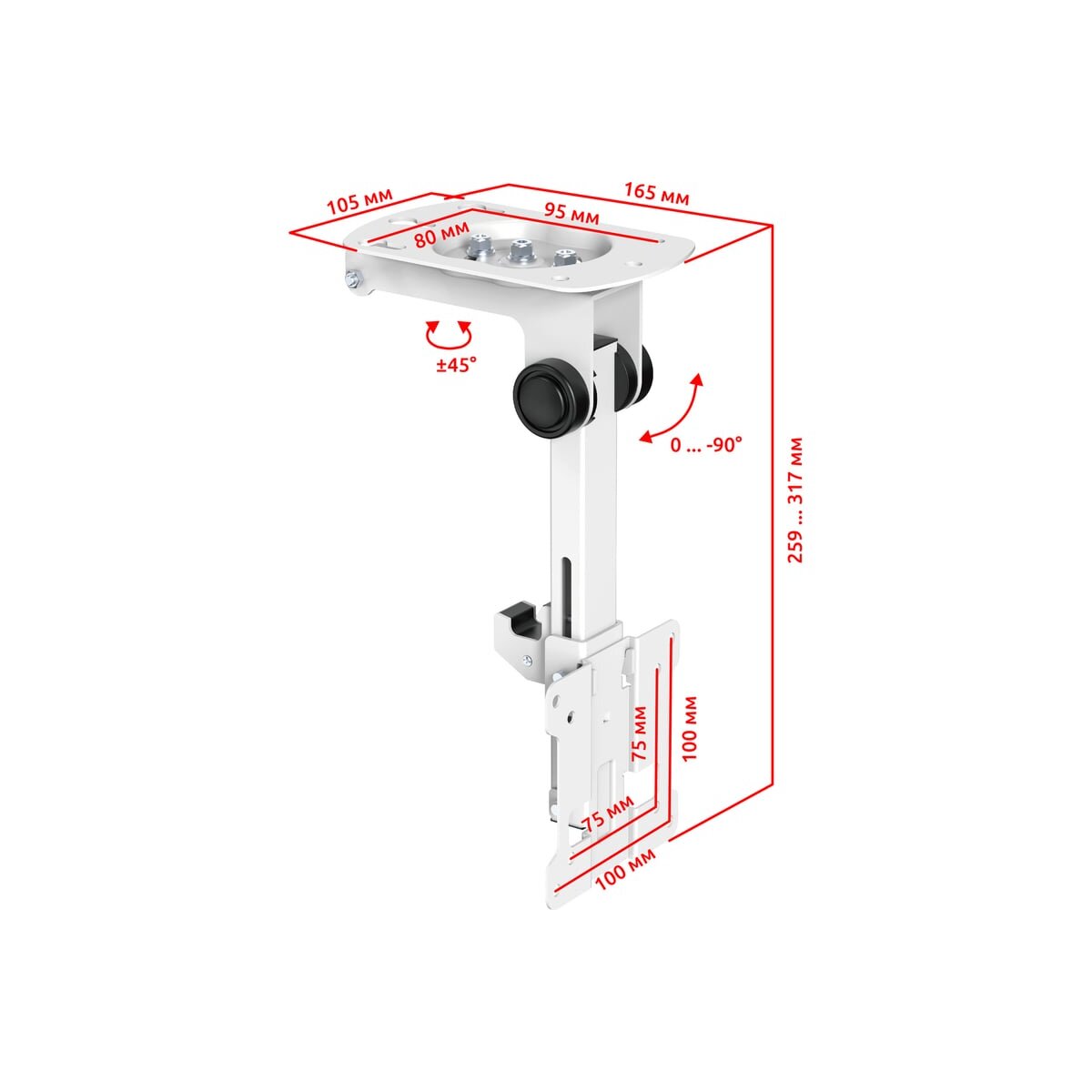Полуавтоматический, складной, потолочный, подполочный кронштейн для телевизора или монитора с возможностью навески под мансарду UNITEKI LCD3110CBW в белом эксклюзивном окрасе. Достоинством кронштейна LCD3110CBW WHITE является прочная конструкция из ABS пластика и стали. Это преимущество обеспечит сохранность вашей панели. Для поворота телевизора или монитора, вам не нужно использовать дополнительных приспособлений или прилагать усилия. Вы сможете повернуть ТВ-панель или монитор лёгким движением руки, при этом телевизор или монитор зафиксируется в настроенном положении. Кронштейн поставляется в оригинальной упаковке, с подробной инструкцией и набором креплений для потолочной и настенной инсталляции.