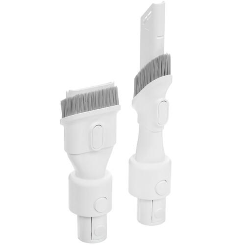 Dreame V9P оснащен адаптером и удобной базой для зарядки, набором насадок для ухода за разными поверхностями. Турбощетка эффективно собирает волосы и шерсть с ковров. Насадка против клещевой пыли буквально взбивает матрас и эффективно собирает невидимые глазу частицы. Щетка для мебели бережно воздействует на ткань обивки при устранении загрязнений.