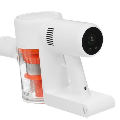На корпусе Mijia K10 есть удобный регулятор мощности, индикаторы выбранного режима, заряда батареи и блокировки. Конусно-циклонная система фильтрации эффективно собирает мелкую пыль и грязь, сохраняет мощность всасывания 150 Вт при работе с полным контейнером. Магнитный резервуар позволяет настраивать объем выпускаемой воды для влажной уборки.