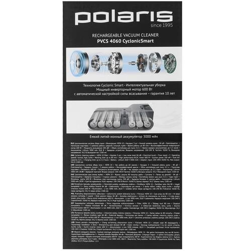 Пылесос Polaris PVCS 4060 создан для сухой уборки и использует контейнер объемом 0.3 л для сбора пыли. Работает устройство от Li-Ion-аккумулятора емкостью 3000 мА·ч. Его полного заряда хватает на уборку в течение 10-80 минут. Этого достаточно, чтобы эффективно избавиться от мусора и пыли в большом доме. На зарядку аккумулятора уходит 180 минут.