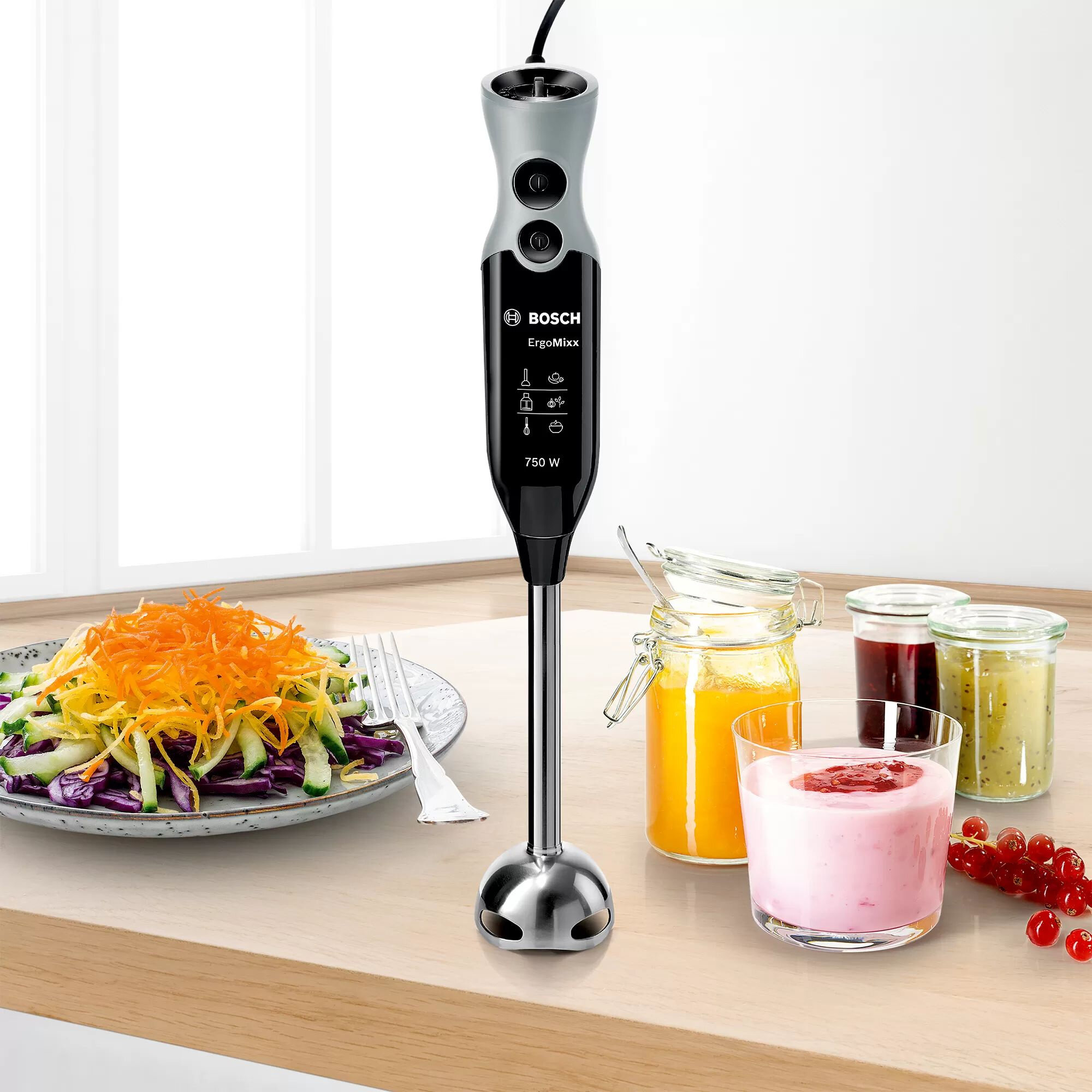 Насадки в комплекте: измельчитель, венчик для взбивания