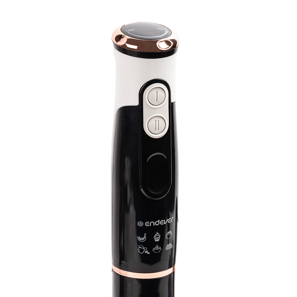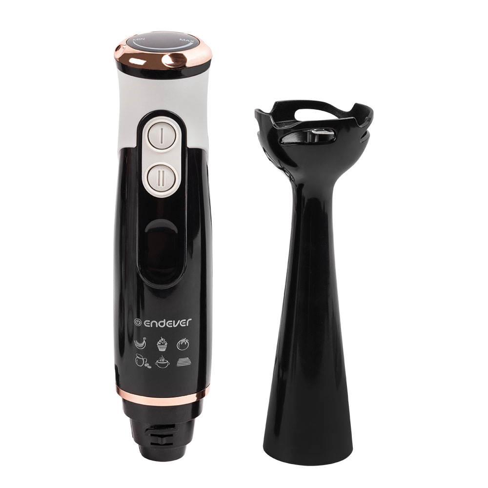 Особенности и дополнительные функции Специальная форма погружной насадки предотвращает попадание брызг на рабочую поверхность, Эргономичный дизайн, Низкий уровень шума и вибрации, Два режима скорости + плавная регулировка скорости, Материал ножей - нержавеющая сталь, Плавная регулировка скорости, Снятие насадки одним легким движением, Дополнительный комплект аксессуаров