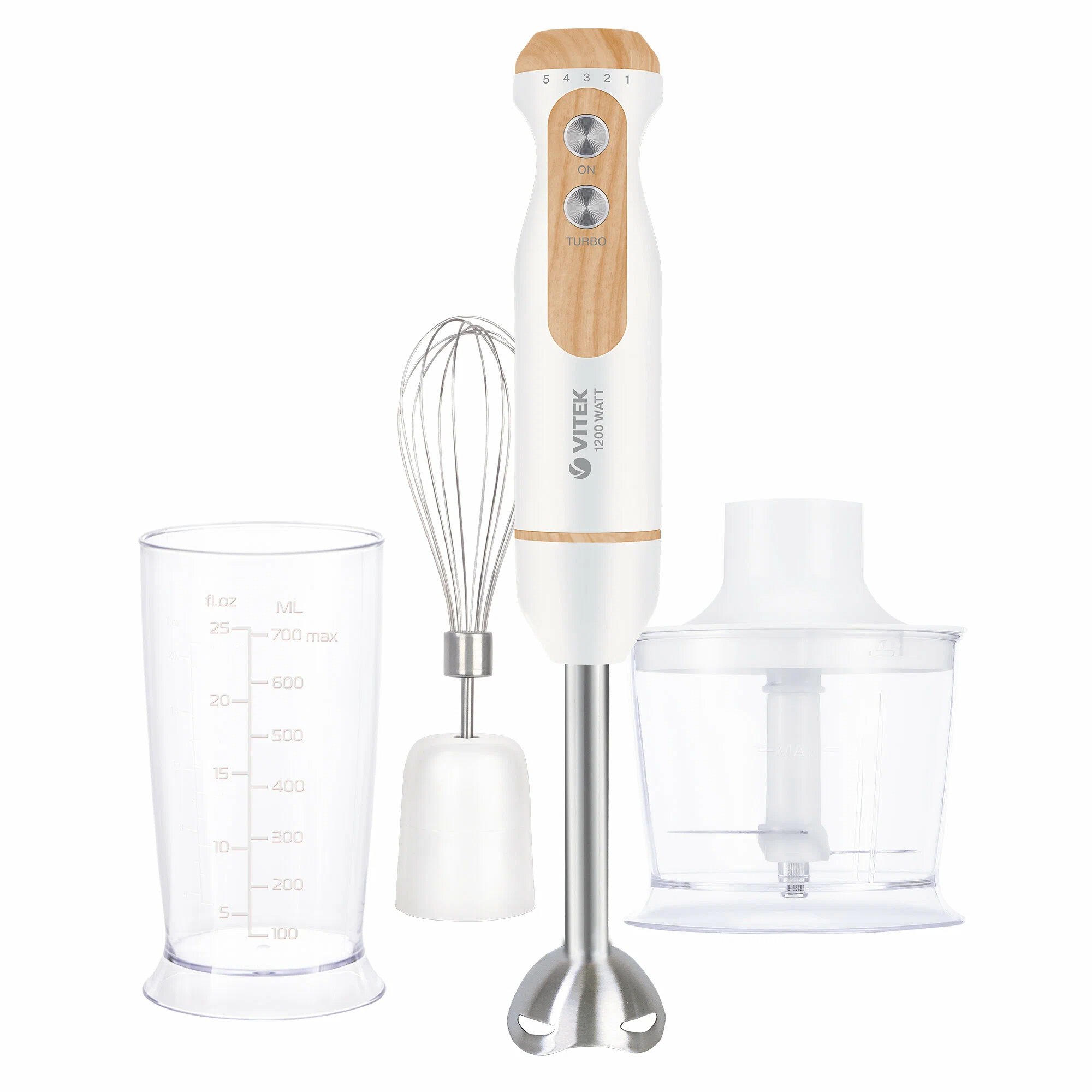 Комплектацияблендер-1; венчик-1; насадка-чоппер-1; мерный стакан-1; измельчитель-1; нож измельчителя-1