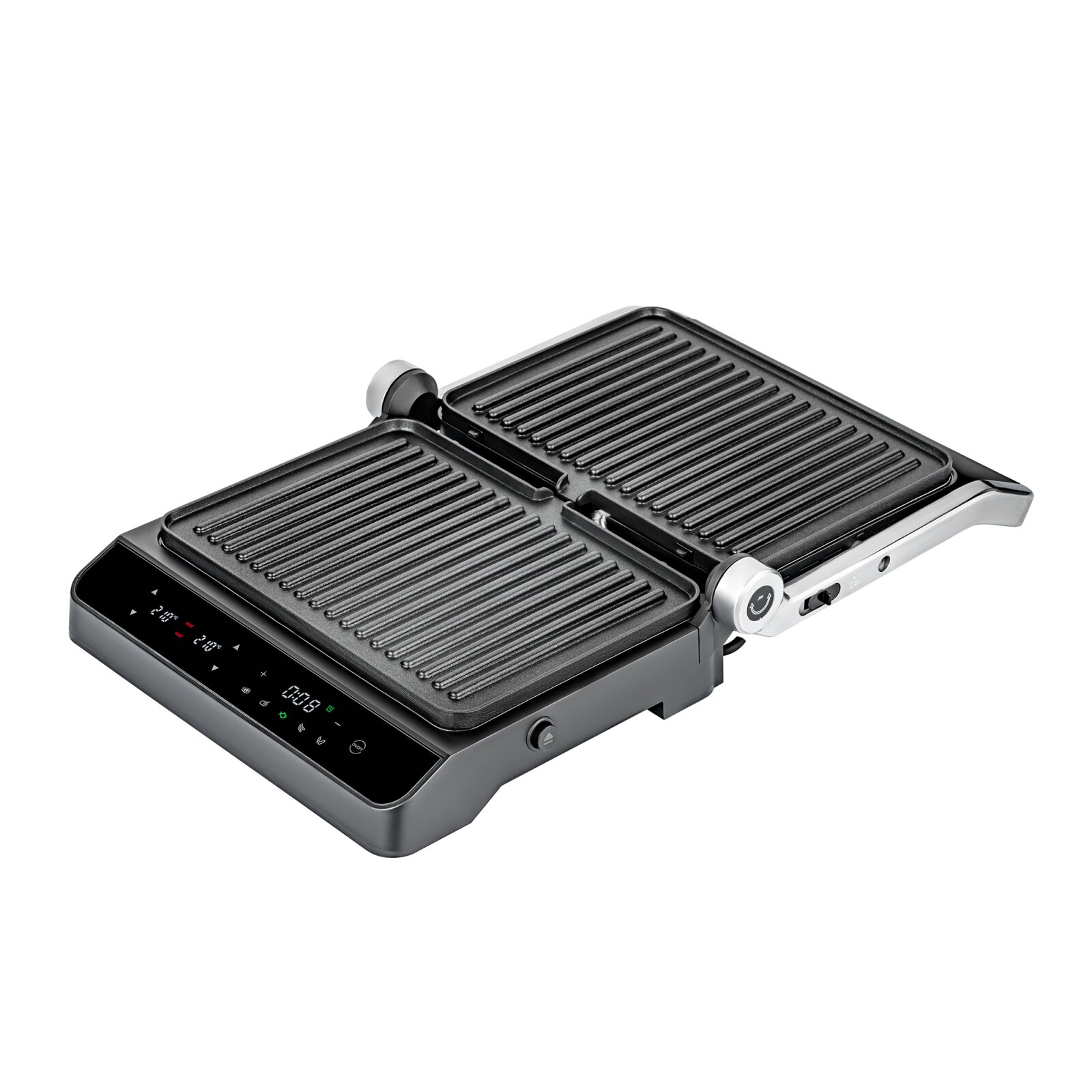 Максимальный угол раскрытия 180 градусов позволяет работать с данным устройством не только в режиме гриля, но и в режиме барбекю! Используйте сразу обе нагревательные панели в полностью раскрытом режиме, чтобы увеличить площадь приготовления!