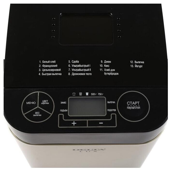 поддержание температуры, регулировка веса выпечки, таймер, ускоренная выпечка