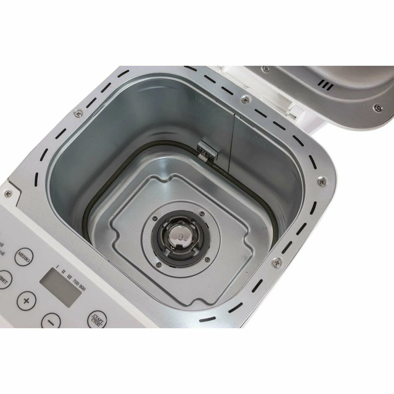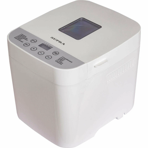 Отложенный старт; Поддержание температуры после выпекания; Индикация включениявремени приготовления; Прорезиненные ножки; Дисплей; Съемная форма; Звуковой сигнал; Окно контроля процесса; Сохранение программы при сбое электропитания; Отключение звукового сигнала; Программы хлебопечения: безглютеновый хлеб/безглютеновый кекс/ржаной хлеб/бородинский хлеб; Программы приготовления: тесто/варенье/кекс; Дополнительно в комплекте: мерный стакан, мерная ложка