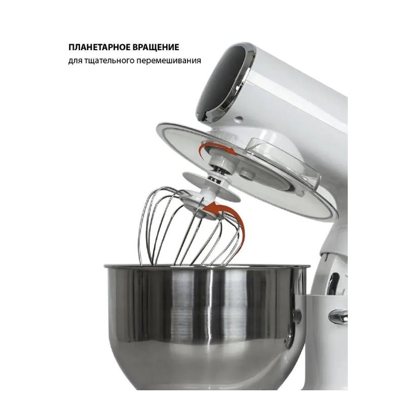 Миксер планетарный с чашей 5 литров из нержавеющей стали JVC JK-MX515 white с импульсным режимом, мощностью 1000 Вт, 3 насадками и 6 скоростями представляет собой современный стационарный домашний миксер для замеса дрожжевого и бездрожжевого теста различной вязкости, взбивания яиц, сливок, кремов и муссов, приготовления пюре. Миксер с чашей JVC имеет планетарную систему смешивания. Это значит, что насадки вращаются вокруг своей оси и по окружности чаши, поэтому тесто или другие ингредиенты будут иметь идеальную консистенцию без комков. Такой чудо-прибор отлично справляется с «тяжелым тестом», поэтому его часто используют в небольших пекарнях и домашних кондитерских.